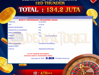 DEWATOGEL JACKPOT LIVE CASINO DI 12D THUNDER Rp 134.200.000,- LUNAS