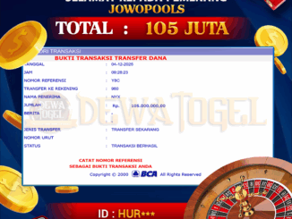 DEWATOGEL JACKPOT TOGEL DI JOWOPOOLS Rp 105.000.000,- LUNAS